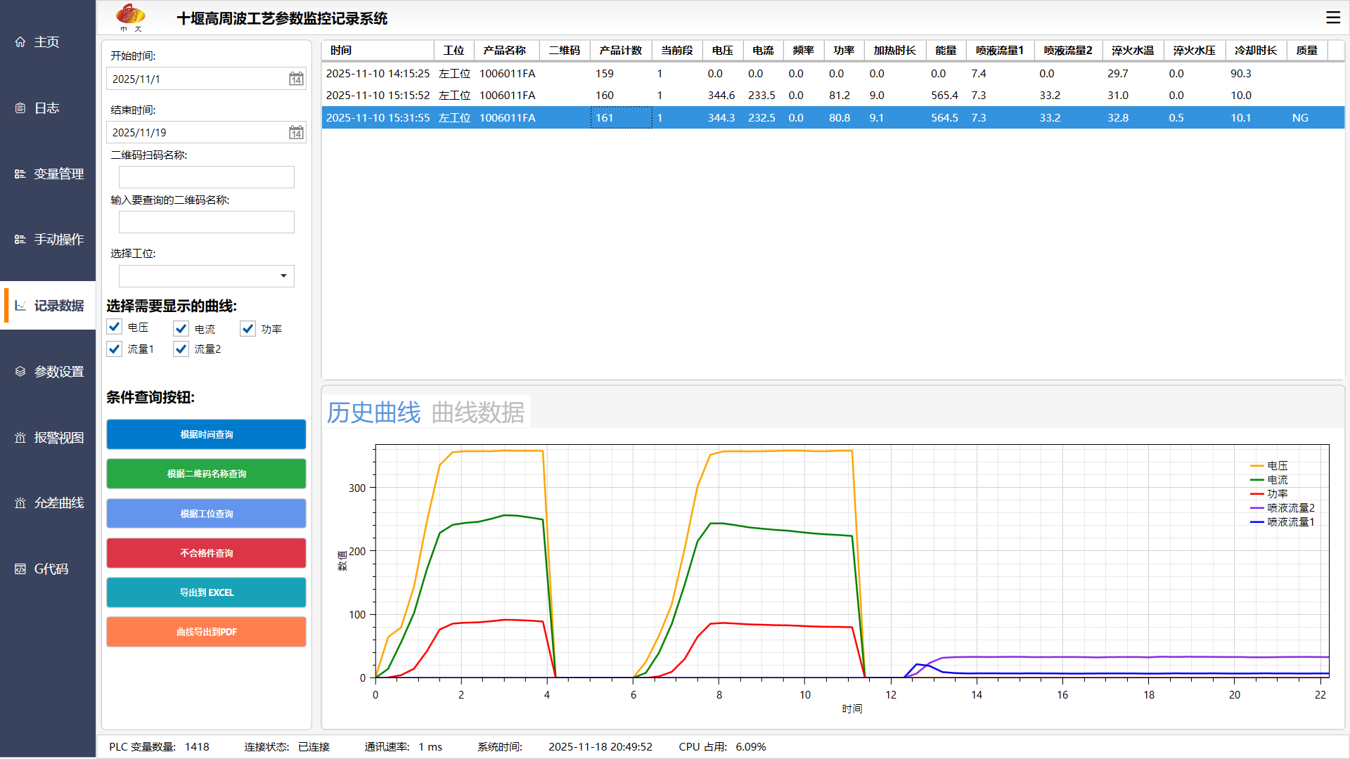 工藝參數(shù)監(jiān)控記錄系統(tǒng)主界面